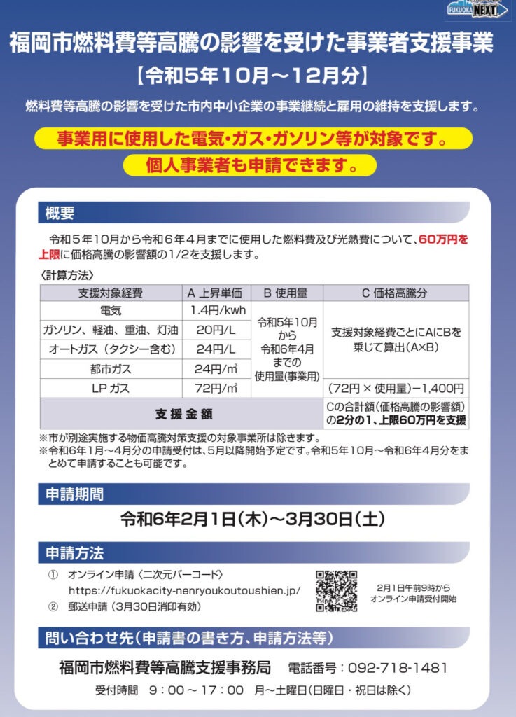 福岡市では引き続き、燃料高騰に影響を受けた事業者さんを支援しています。