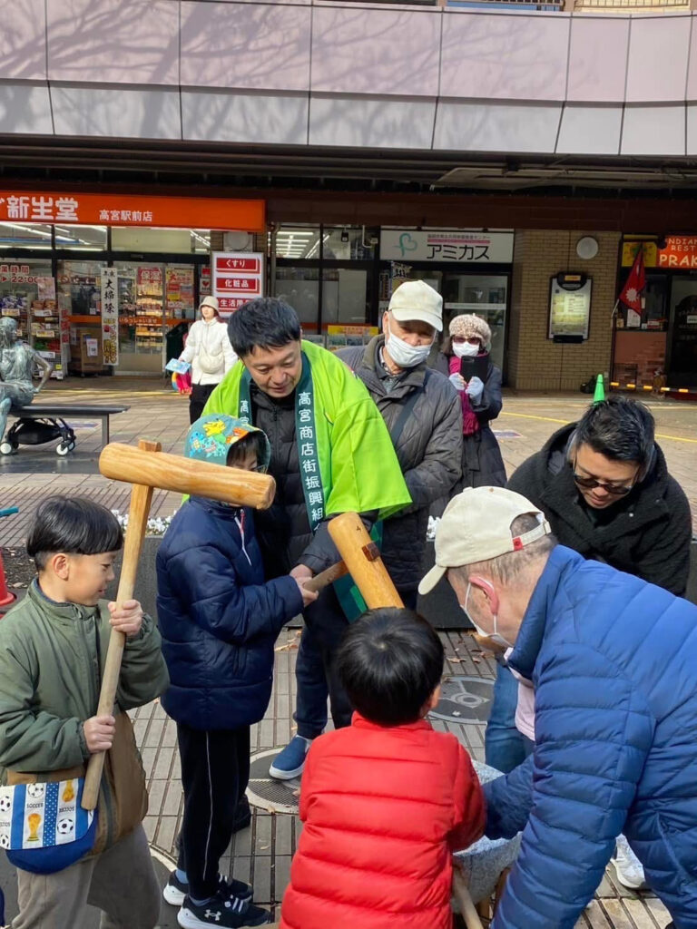 年末恒例、高宮商店街振興組合主催の「大餅つき大会」。